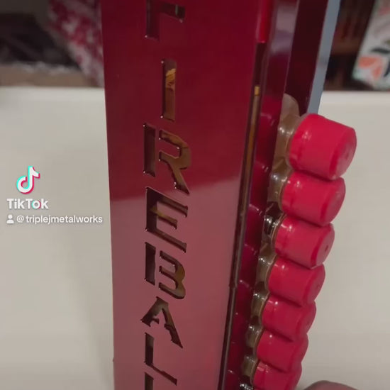 Welcome to the 'Fireball Holder'! This dispenser is the perfect accessory for any lover of mini Fireball bottles. It can hold up to 14 mini Fireball bottles, making it a convenient way to store and access your favorite drink.