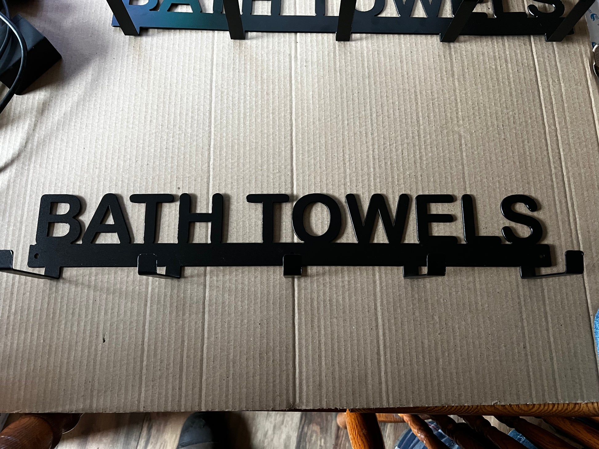 Custom towel rack, use one of our sayings or create your own. Made from 14 gauge steel and powder coated to withstand the elements. 22”x 4”