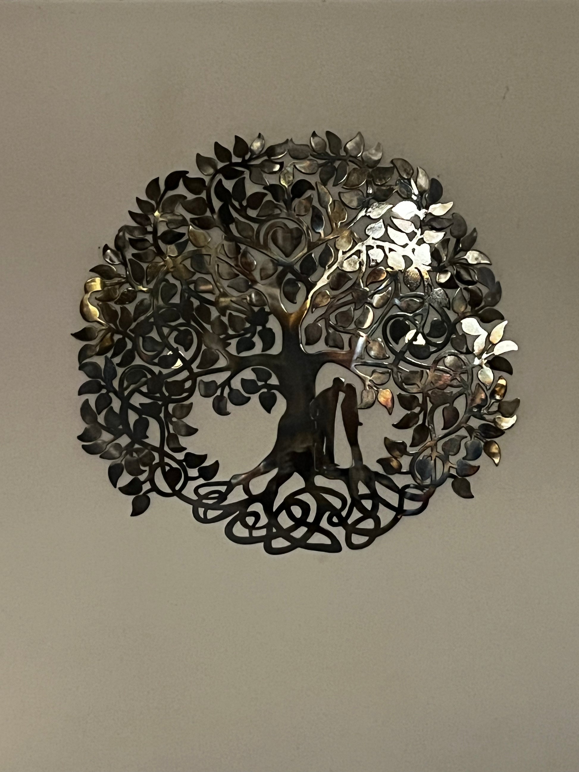Celebrate the love and togetherness with our Wedding/Anniversary Tree of Life. Each piece is crafted from 14 gauge steel and heated to achieve its unique color, ensuring that no two are alike. Measuring 30" x 30", this stunning piece is powder coated clear for added durability. Perfect for weddings or anniversaries, this item is made to order and will be a beautiful addition to any home decor or party setting.